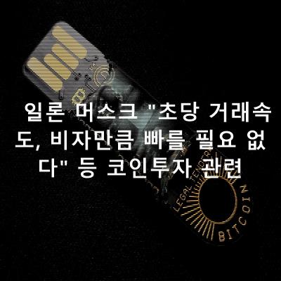 일론 머스크 "초당 거래속도, 비자만큼 빠를 필요 없다" 등 코인투자 관련등 코인투자 필수 정보 정리 하였습니다.