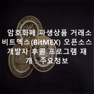 암호화폐 파생상품 거래소 비트멕스(BitMEX) 오픈소스 개발자 후원 프로그램 재개 : 주요정보등 코인투자 필수 정보 공유해 드립니다.