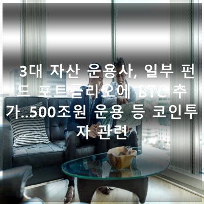 3대 자산 운용사, 일부 펀드 포트폴리오에 BTC 추가..500조원 운용 등 코인투자 관련등 관련 뉴스 작성합니다.