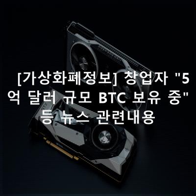 [가상화폐정보] 창업자 "5억 달러 규모 BTC 보유 중" 등 뉴스 관련내용등 코인투자 필수 정보 정리하여 드립니다.